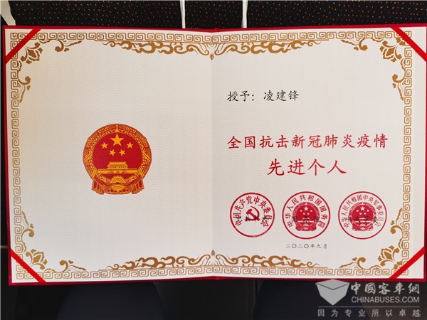 镇江市公共交通有限公司总经理凌建锋获得“全国抗击新冠肺炎疫情先进个人”称号