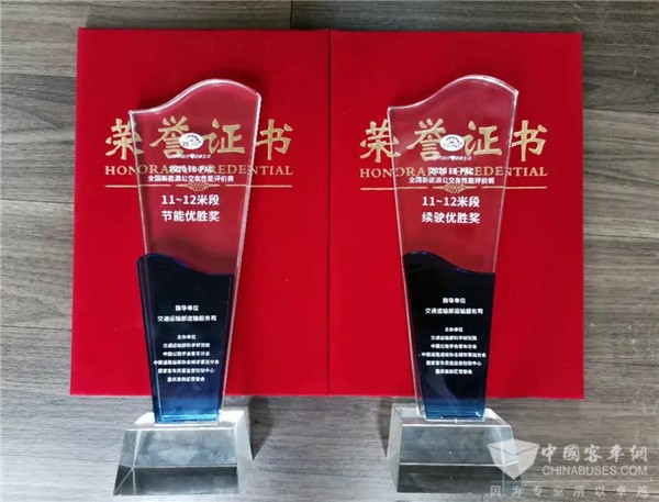 安凯HFF6120G9EV21获得11-12米段节能优胜奖、续驶优胜奖。