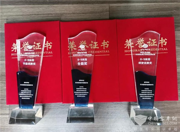 比赛将奖项设置为两个单项奖,分别为节能优胜奖、续驶优胜奖;还设置了一项全能奖,根据动力、舒适、续驶、电耗四个单项比赛的成绩按车辆综合性能评价方法计算总成绩。