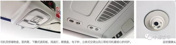 走出驾驶室,记者抬头就看到了多功能豪华大前顶、沐浴式出风口,左侧标配安全门,司机顶灯、医药箱、USB充电接口……很贴心。