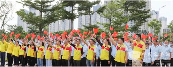 大家手中挥舞着红旗