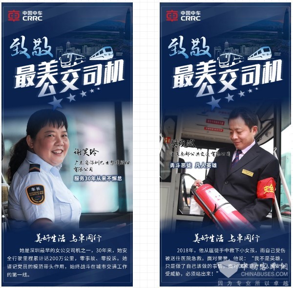 现场,组委会发布了全国百名“最美公交司机”和“十大最美公交司机”名单。活动自2019年8月启动以来,经过组委会资料审核、网络投票、专家终选等环节,最终来自广州公交集团驾驶员丁建民等100人为2019年“最美公交司机”,其中北京公交集团驾驶员常洪霞等10人为2019年“十大最美公交司机”。10家单位获得组织贡献单位,值得一提的是中车电动榜上有名。