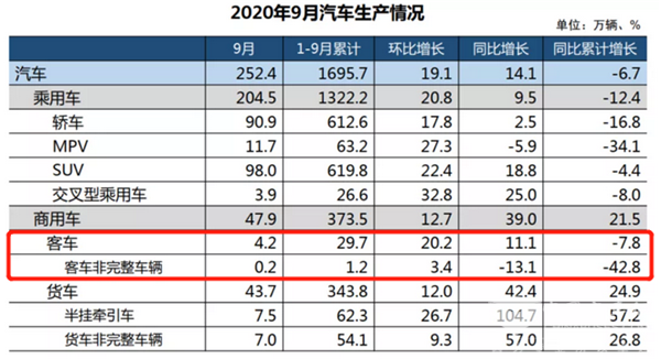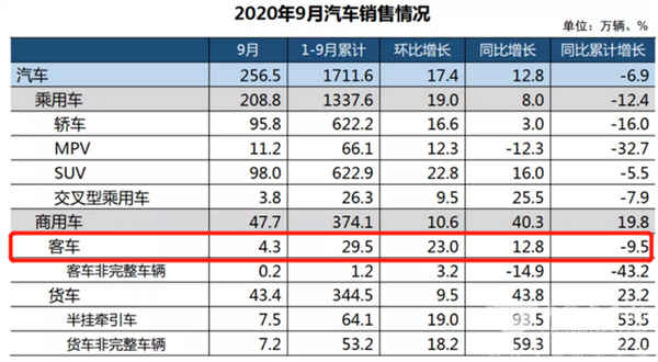 2020年9月客车销量出炉:同比增长12% 环比大涨23% 客车市场持续回暖