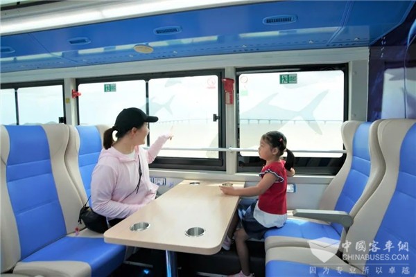 在珠海出差的严先生并不是第一次乘坐双层巴士,但银隆新能源双层观光巴士依然让他眼前一亮。“和之前乘坐的双层巴士相比,银隆双层巴士更为宽敞舒适,车内还有VR体验区、车载冰箱、8国语音播报系统,非常适合我们这种在外出差、旅游的人。”一边说着,严先生一边用手机对着窗外录制,一寸美景也不愿意错过。