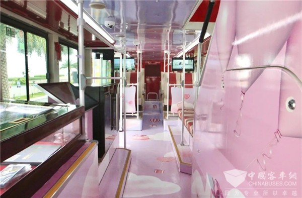 “这车舒服啊,一是车厢空间大,一点都不挤,二是车厢里环境好,这粉粉的车厢多可爱、多浪漫啊。”张女士一家从江西来到珠海旅游,说话时脸上洋溢着兴奋的神情。张女士一旁坐着的是她七十高龄的母亲,老奶奶一脸轻松模样,她说双层巴士座椅很舒适,而且车辆行走起来很稳,像是坐着家里的小轿车一样,一点都不晕车。