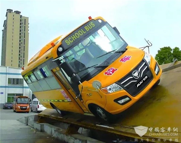 福田欧辉专用校车采用半承载车身、全承载生产方式,能够有效保证在减轻车身重量的情况下,稳固车身。整车采用高强度钢骨架钢梁与贯通式大梁,坚固耐用,有效的避免了碰撞隐患。同时,车辆经过多次严格的实车检测与侧翻验证,实车空载42°侧倾稳定角远优于国家强制标准要求的35°,并通过北京、广东工厂专业试车场地的多种路况、20Km(调试)+20Km(质量)的路试,避免了孩童乘车意外的发生。