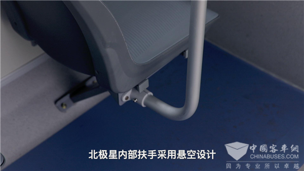 金旅北极星通过底盘结构和车门位置变化,在这辆8米8客车上实现了低地板设计,登车便利性在我们这个日趋老龄化的社会中将会变得越来越重要。车内的布局同样如此。北极星的扶手采取不落地设计,使得整个车内地板更加平整,增加了乘坐者的脚下空间,也改善了人员在车内的通过性。扶手的高度和分布,也更趋人性化。
