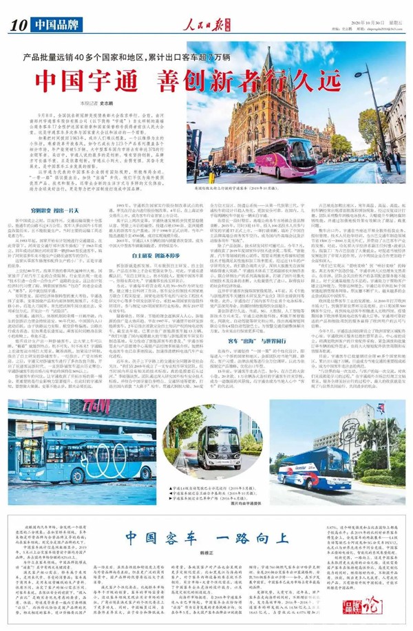 《人民日报》整版报道:中国宇通 善创新者行久远