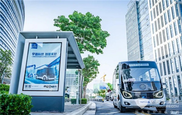 图 | 宇通L4级自动驾驶巴士在智慧岛运行