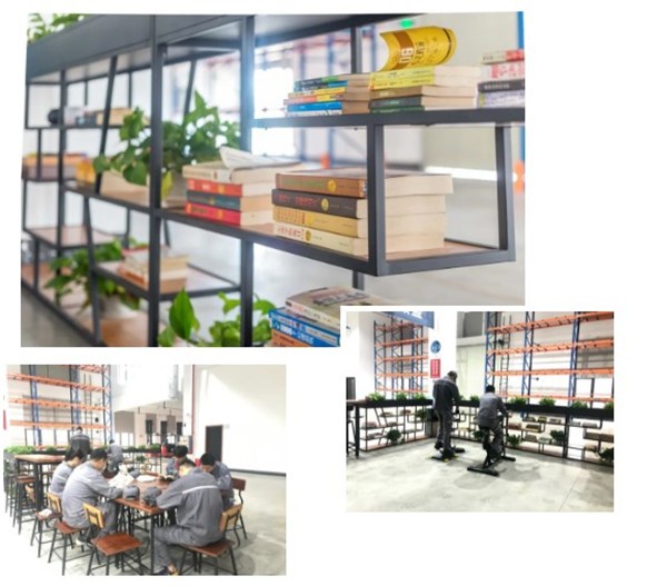 “温馨之家”功能涵盖“健身中心”、“学习园地”、“心灵驿站”、“文创作品”、“群团阵地”,配备了书架、各类图书、中国象棋、健身器械、跳绳、呼啦圈等文化体育用品,为员工提供了一个固定的活动场所营造了良好的企业人文氛围,让员工在阳光、健康的工作氛围中快乐的工作和成长。