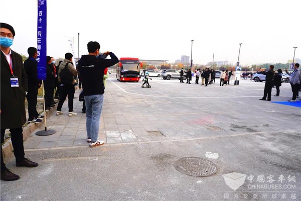 只见安凯无人驾驶客车在所有参会人员的关注下稳步启动,途经限速标识自动减速,路遇障碍物自动停车,而所有这一系列行为完全没有人工干预。如此高度智能化的驾驶表现获得现场媒体和观众的高度关注和点赞。