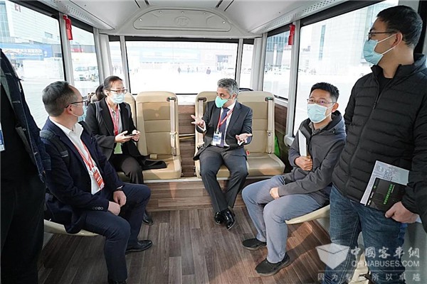 参会嘉宾登上安凯无人驾驶客车试乘体验