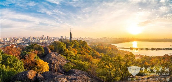 好车配美景!吉利远程客车驶进杭州西湖景区