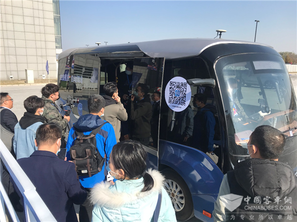 2020年11月11日,2020世界智能网联汽车大会(WICV2020)在中国国际展览中心(新馆)举办。所有参会的嘉宾,都会在入馆途中注意到登录厅边的自动驾驶演示区域。今年共有16家企业参与到展会自动驾驶演示环节,厦门金旅是其中为数不多的客车企业之一。星辰蓝色的身影,无疑是焦点中的焦点。