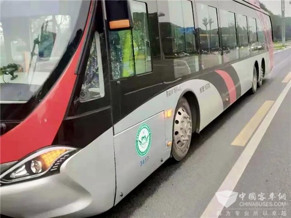 行驶在科技城的银隆新能源13.7米纯电动海豚公交车自带“高科技感”。