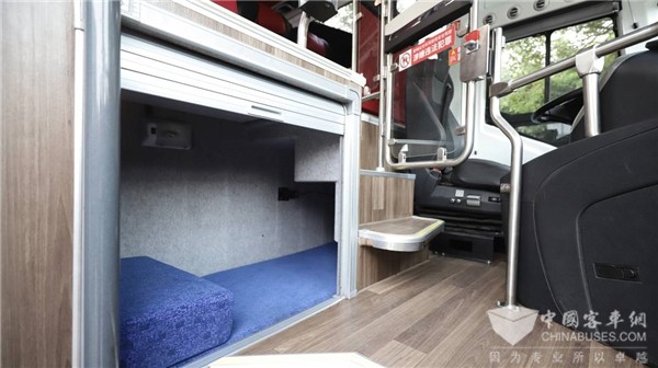 当司机长途驾驶时,或者是停车等待乘客游玩时肯定会想找个能好好休息的地方,接下来才能够提起精神安全驾驶。海格旅行家为司机贴心的设置了休息舱,休息舱还带有舱门保证司机休息质量。