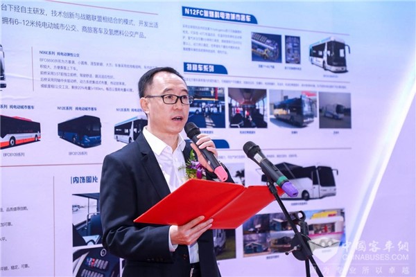 中国公路车辆机械有限公司总经理、党委副书记宋金刚在致辞时表示:“北京北方是中国豪华大客车第一家生产者,也是国家多项客车标准的重要参与者。他们传播了尼奥普兰厚重的技术优势,在安全性、稳定性、舒适性上精益求精,同时也因地制宜、因时制宜、不断创新,推出了多款全新改进的高档豪华大客车。更可喜的是,此次面世的‘火凤凰’微循环公交车造型优美、乘坐舒适,采用了多项创新技术,适应了新的出行方式,为智慧交通提供了崭新的搭载平台。”