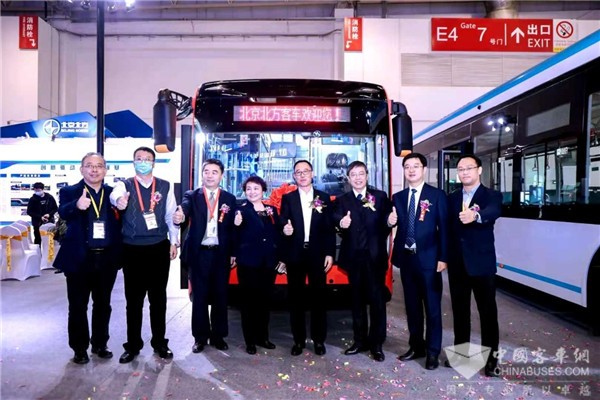 其中,BFC6128GBEV5智慧新能源城市客车是北京北方主动践行国家战略、助力城市交通智慧出行网络而打造的一款集轻量化、智能化、网联化、数字化为一体的产品。该产品车身采用轻量化镁铝合金,配合NEOPLAN全承载核心技术,重量同比钢结构下降500Kg,配以轮边驱动技术,使得驱动效率及续航能力大幅提升。同时,ECAS侧跪技术、无障碍伸缩踏板、1700毫米超宽塞拉门的应用,使得车辆更能体现城市公共交通的人文关怀。此外,360车辆环视系统、电子后视镜等8大智能辅助驾驶技术的应用,实现全方位智能安全保障,大大提升了整车的安全性和操控性。