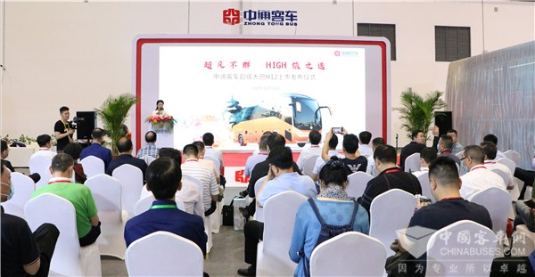 2020年11月20日上午,“超凡不群,HIGH旅之选” 中通客车超级大巴H12上市发布仪式在海南国际会展中心举行。中国旅游车船协会会长、北京首汽(集团)股份有限公司党委书记、董事长赵金俊,中国旅游车船协会秘书长王争鸣,中国旅游车船协会顾问张传尧,聊城交通汽运集团有限责任公司董事长王红岩,中通客车党委副书记、总经理彭锋,国际知名NVH专家、中通客车首席技术专家黄显利博士,中通客车首席技术专家吴晓闯博士等领导、嘉宾参加,共同见证中通客车超级大巴H12揭幕,现场来自社会和媒体代表共计600余人见证了这一历史性时刻。