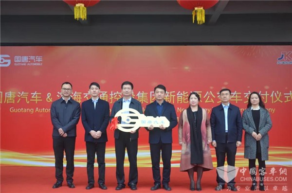 2020年11月21日,“国唐汽车&滨海交通控股集团新能源公交车交付仪式”在滨海城西公交枢纽站顺利举行。本次活动邀请了盐城工信局新兴产业处处长王雪东,滨海工信局局长高亚国,建湖高新区党工委副书记黄坚等出席。滨海交通控股集团董事长、总经理钱俊,悦达汽车发展副总经理孙海甲、工会副主席徐丽,高鸿股份副总经理兼国唐汽车总经理张新中等参加活动。交车仪式由滨海交通控股集团副总经理陈国元主持。