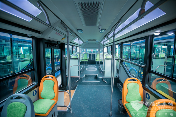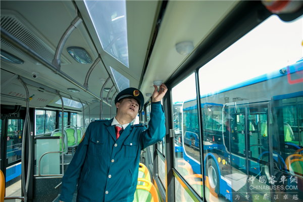 在轻量化方面,通过新工艺、新材料应用,车辆自重较之前相比减重2-3吨;此外,为解决乘客痛点及需求,车辆还创新搭载“可调控渲染灯、加热扶手杆、乘客阅读灯、空气净化器、全自动恒温空调、USB快速充电”等多种新型设施,堪称全国智能网联公交创新的典范!