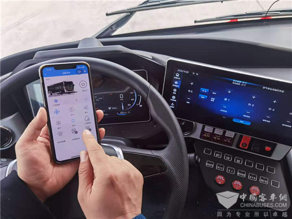 “诸如USB快速充电、空调、加热扶手杆、渲染灯、乘客阅读灯等这些创新设施,如今,通过一部手机就可以轻松控制,将为驾驶员及乘客带来更加舒适、便捷的出行新体验。” 孟彦表示。