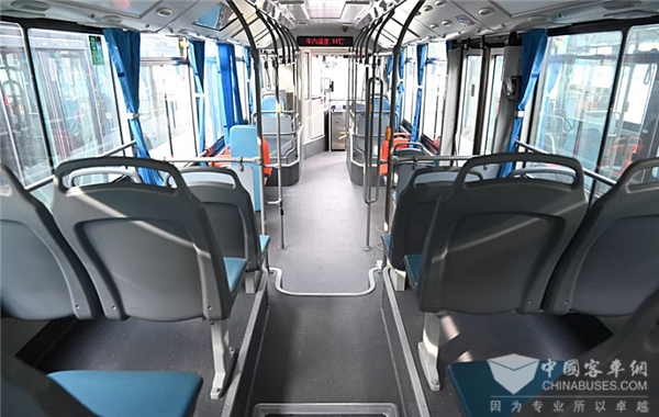 在舒适性方面,乘客座椅采用皮质软座椅,整车扶手采用美观耐用的拉丝不锈钢扶手,同时匹配防寒护套,提升抓扶手感,冬季出行更暖了。