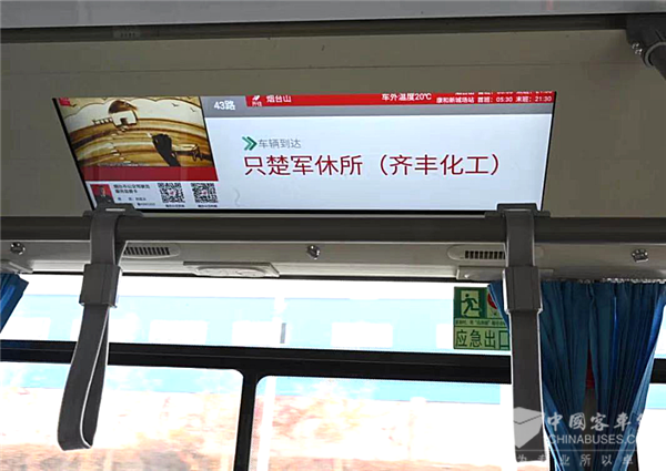 功能强大的LCD液晶导乘屏,可实现车外温度显示,站点周边知名景点播报功能,同时还可发布线网调整公告,播放短视频,显示当班驾驶员信息等内容,显示画面更加细腻美观,程序控制更加方便。此外,车辆预留各类设施部件的通讯端口,为下一步实现车联网智能化管理打下基础。