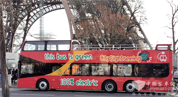 2017年8月,由安凯研发制造的世界首台纯电动双层敞篷观光巴士交付法国客户,并运营在巴黎的城市观光线路上,将中国新能源客车的魅力带到这座国际大都市,为这座浪漫之都再添一抹风采。