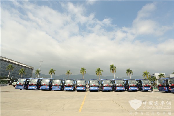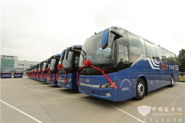 2020年11月28日,30辆美观大气的金龙纯电动XMQ6112交付“老朋友”广州交通旅行社,这是双方合作十余年来首次交付的大批量纯电动订单,这将助力广州交运集团业务升级,赢运旅游通勤市场。