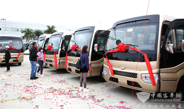 2020年12月4日,30辆金龙多功能商用车浩锐XMQ6706交付云南陆良县青山客运有限公司(简称“青山客运”),该批车辆将投入陆良县至曲靖市的城际线路运营,高质量打造当地城际出行服务。