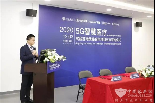 2020年12月3日下午,金龙客车与厦门弘爱医院、科技谷(厦门)信息技术有限公司、福建网智慧瑞大数据科技有限公司及中国移动通信集团福建有限公司厦门分公司正式签署五方战略合作协议,共建5G智慧医疗实验基地。厦门弘爱医院应敏刚院长、福建网智慧瑞大数据科技有限公司李明非总经理、科技谷(厦门)信息技术有限公司陈思恩总经理、中国移动通信集团福建有限公司厦门分公司尤琦副总经理、建发医疗公司副总经理徐伟、金龙客车工程研究院苏亮院长和金龙专用车事业部刘孔斌副总经理等代表企业进行签约。