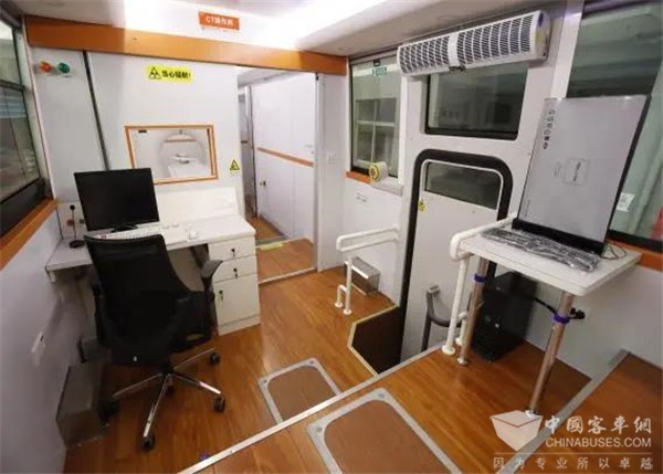 移动CT车采用移动车载CT、检验设备以及信息化组成,可实现CT扫描、医疗检查、远程医疗等功能。通过成熟稳定的医疗车设备、高质量的图像以及5G智能云结合,可实现24小时运转,助力医疗人员进行有效筛查。