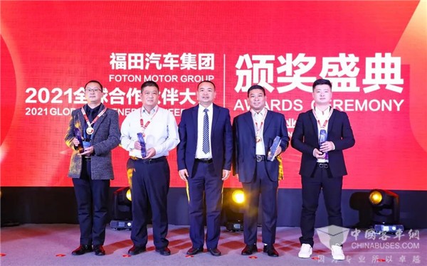 福田汽车集团董事会秘书龚敏(右三)颁发突出贡献奖