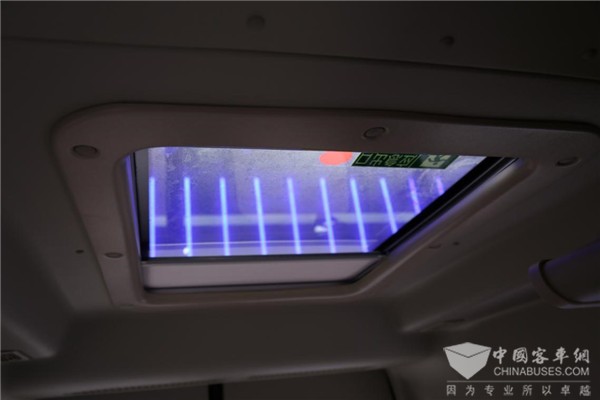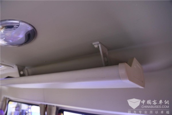 车顶上和标准的旅游客车一样设置了行李架,虽然行李架的宽度和长度有限,但放些日常使用的手提包背包还是绰绰有余的。