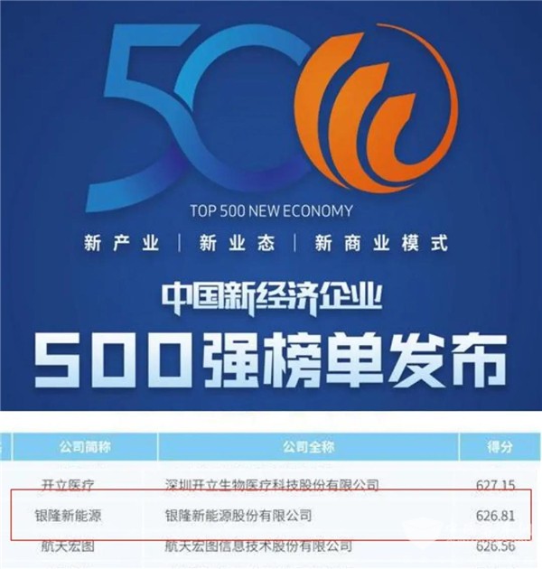 创新谋发展 银隆荣登中国新经济企业500强榜单