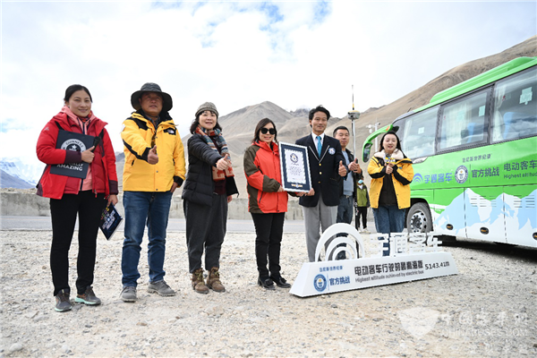 9月22日,宇通纯电动客车抵达珠峰5143.41米海拔处,宣告了宇通客车对“电动客车行驶的最高海拔”吉尼斯世界纪录的挑战成功。这是宇通客车的荣耀,也是中国制造的骄傲!获得吉尼斯世界纪录称号,不仅是宇通客车挑战极限、追求极致的有力注脚,也代表着世界权威认证机构对中国客车制造行业的肯定,这将激励以宇通为代表的中国客车制造企业百尺竿头更进一步,在追求更高品质的道路上奋勇前行,再攀高峰。
