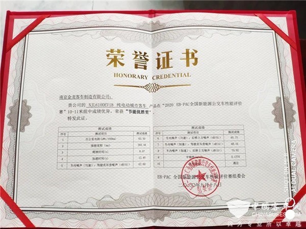 9月18日, 2020 EB-PAC全国新能源公交车性能评价赛完美落下帷幕。全国14家车企的24款新能源公交车型、7家车企的7款自动驾驶客车经过激烈角逐,开沃NJL6100EV纯电动城市客车凭借出色的性能优势脱颖而出,获得10-11米段节能优胜奖,再次验证了开沃在新能源客车领域的技术实力。
