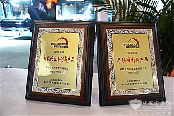 并分别获得“2020年度新能源客车创新产品”和“2020年度车联网创新产品”奖