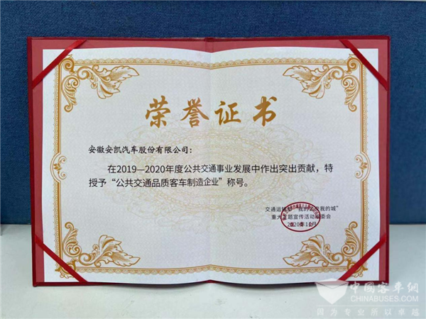 9月,中国汽车企业社会责任暨中国汽车战“疫”英雄谱表彰大会,安凯客车被授予“优秀战‘疫’行动力企业”称号