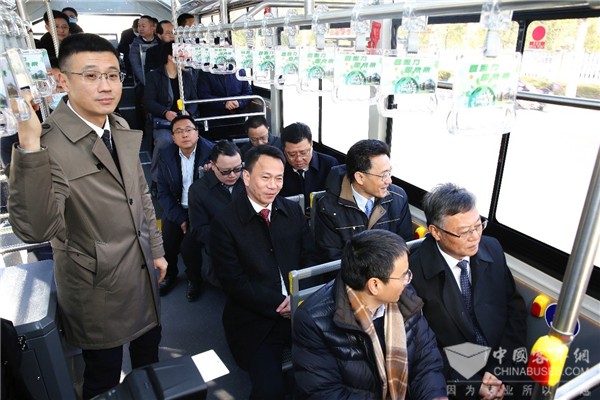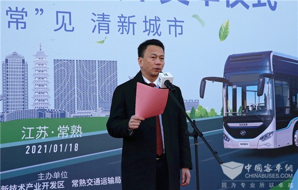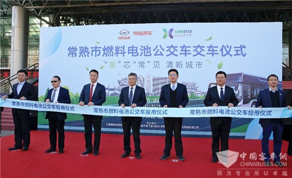 活动现场,常熟市委书记周勤第,市委常委、高新区党工委书记王建国,副市长史纲,高新区管委会副主任顾志强、蒋向阳,市交通运输局局长钱敏磊,上汽集团副总裁、总工程师、捷氢科技董事长祖似杰,捷氢科技总经理卢兵兵,苏州金龙党委书记、董事长陈笃廉,以及常熟市发改委、工信局、财政局和高新区相关部门领导出席交车仪式、参与剪彩,并一起试乘氢燃料公交。