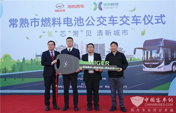 随着苏州金龙总工程师李春向常运公交递交象征合作共赢的金钥匙,16辆海格氢燃料公交正式启航开跑!据悉,该批车将陆续投入常熟135路公交线路运营,始发常熟高铁站,终至常熟高新区武夷山路,全程约26公里。