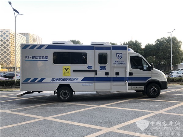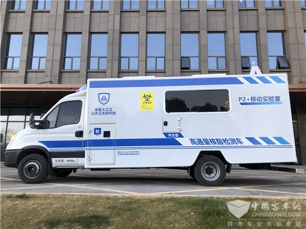为了解决这些防疫场景中实际遭遇的痛点、难点问题,南医大汉卫公共卫生研究院携手南京依维柯专项打造了代表目前国内最先进水平的高端“移动实验室”——高通量多功能P2+核酸检测车。