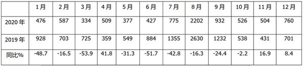 根据中国客车统计信息网数据,2020年1-12月各月校车销量及同比情况如下:单位/台