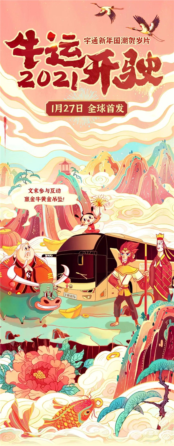 2021年1月27日,宇通客车正式在全球发布新春贺岁短片——《2021牛运开驶》,刚一上线就惊喜不断。这部取材于《西游记》的动画片巧妙融合了现代元素,演绎了一个全新的“智斗青牛精”的故事,以风趣幽默的方式,让人们重新认识了中国制造的另一面。