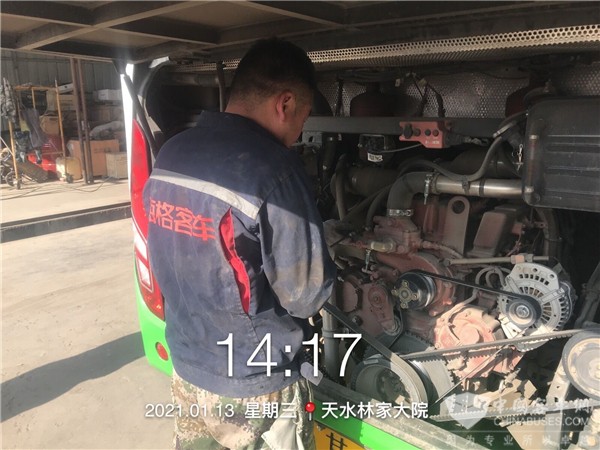 在甘肃,海格兰州金福服务站、兰州鑫龙通服务站、天水鼎兴服务站,分别为甘肃天嘉交通运输集团有限公司、甘肃盛瑞旅游汽车有限公司、甘肃保利旅游客运有限责任公司等客户的海格客车送来了春运前的各项贴心服务。