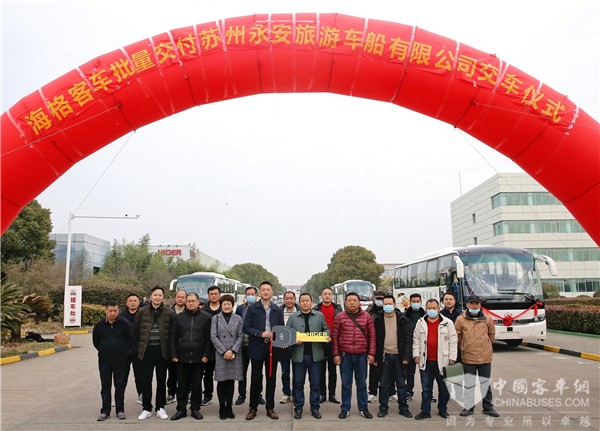 迎着新年的脚步,从事旅游班车业务达十余年的老牌客运企业苏州永安旅游车船服务有限公司(以下简称“苏州永安旅游”)迎来了“新成员”的加入——20辆苏州金龙海格KLQ6115HT 48座公路团体车。据了解,这批车辆将用于苏州永安旅游进一步扩充现有通勤班车业务。