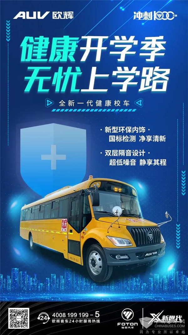 开学季将至,福田欧辉将持续以全新科技产品为孩童上下学保驾护航,为更多孩童筑起安全健康出行的桥梁,守护祖国未来的希望。相信,在福田欧辉的不断深耕研发下,校车产品将不断迭代突破,为孩童上下学提供更为安全的保障,我们一起期待!