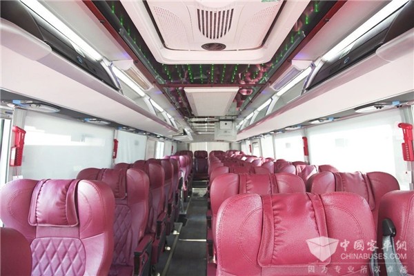 车辆匹配潍柴336发动机强劲动力,性能可靠;采用法士特变速器,稳定易操作;搭载卡拉OK机、冰箱、车内氛围灯等人性化设施,能够全面满足乘客旅游观光的需求。