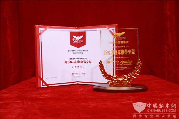 凭借2020年度出色的市场公信力和广泛的用户认可度,开沃汽车全局发力,一举斩获三项大奖,再次向中国客车行业彰显了其在新能源客车产业的非凡影响力,成为本次活动最大赢家之一。其中,开沃NJL6600EV纯电动公交车荣膺 “微公交客车之星”奖项、NJL6856EV获评“新能源客车推荐车型”奖项。此外,开沃集团旗下的创源动力电池——天玑系列高能动力电池水冷箱荣获“锂离子动力电池应用成果奖”。